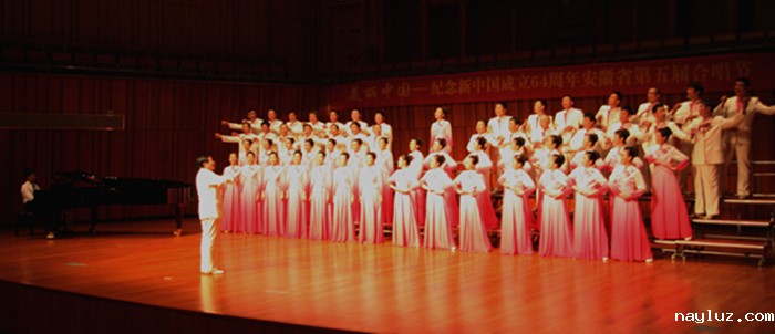 为庆祝中华人民共和国成立64周年,让高雅艺术走进群众生活,经过几个月紧张、周密的筹备,“美丽中国——庆祝新中国成立64周年”安徽省第五届合唱节于