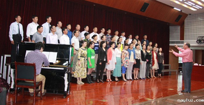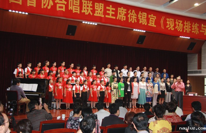 徐锡宜先生系中国音协合唱联盟主席、著名指挥家、作曲家。代表作品《十五的月亮》(与铁源合 作)、《战士歌唱毛主席》、《七色光之歌》、《怀念战友》、《中国中国我爱你》、《我的歌飞过太平洋》、《飞吧,心中的歌声》、《风帆》等歌曲在民间流传 甚广。本次合唱节的另一个重头戏,就是邀请徐锡宜先生来皖讲学。9月8日上午,在合肥市蜀山区政府礼堂,徐锡宜先生就《合唱排练与指挥》作了精彩讲解。他 的讲学深入浅出,妙趣横生。新利18手机官网界的同仁们紧紧抓住了这次难得的机会,礼堂座无虚席,台上台下互动良好,气氛活泼而热烈。合肥市红星路小学小百灵合唱 团登上舞台,徐锡宜先生现场指点排练《八只小鹅》,就指挥和孩子们存在的问题分别进行悉心指导,同时传授大家如何练声,如何做好声部配合,如何登台指挥。 75岁高龄的徐锡宜先生身板硬朗,声音洪亮,讲学几乎不用话筒,而全场都能听得一清二楚,并且从头至尾站着讲学,非常投入。整场讲学下来,徐锡宜先生依旧 神采奕奕,毫无倦意。最后,徐锡宜先生亲自示范指挥安徽星空合唱团演唱《嘎哦丽泰》。徐先生谦虚地说:我不是大师,我是来安徽学习交流的。三个小时在不知 不觉中飘然而逝,这是一段令人难忘的美好时光。虽然短暂,但我们见到了真正的长者,真正的大师,真正的风采。