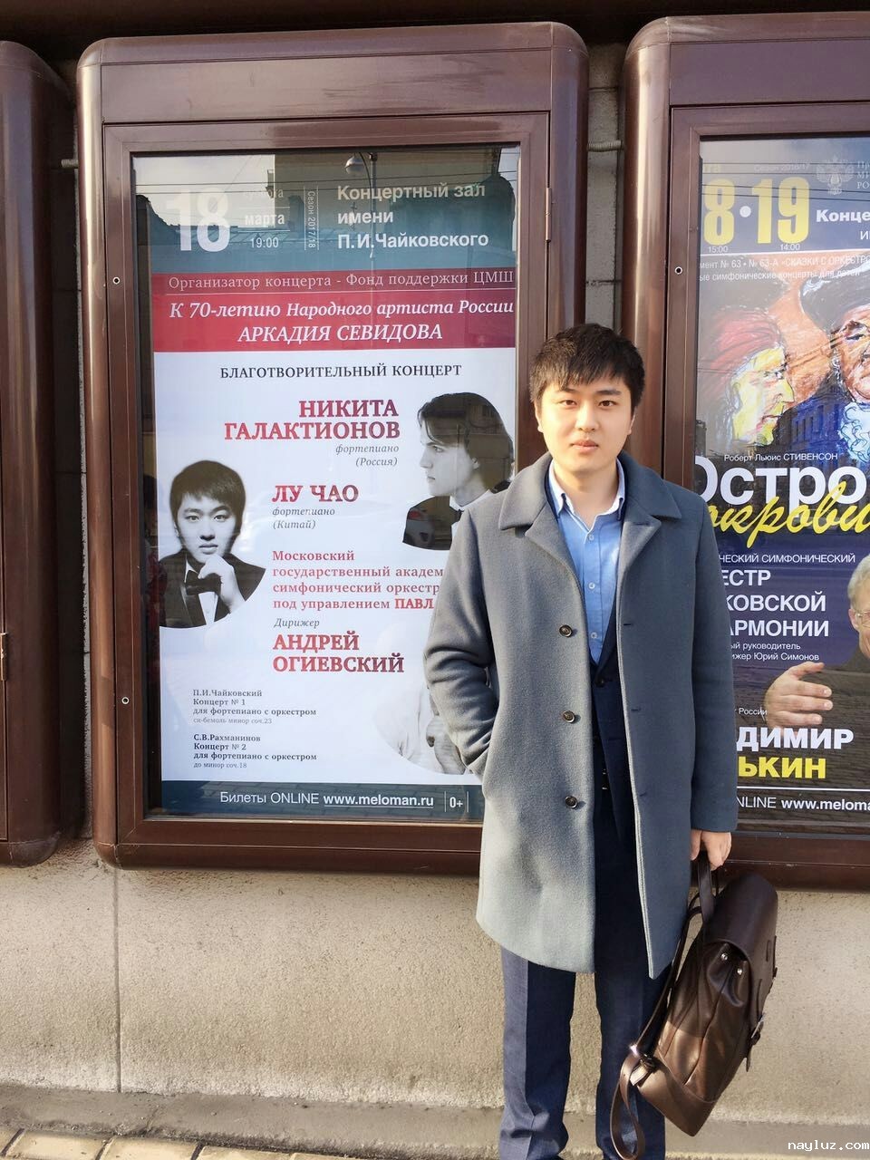 鲁超现在莫斯科柴科夫斯基音乐学院钢琴系攻读博士,师从著名钢琴家阿尔卡基谢维托夫(Аркадий Севидов) 教授,在学期间多次在意大利,德国,西班牙,葡萄牙,乌克兰等国家举办的国际钢琴比赛中获奖,并在国内外开过多场个人钢琴独奏音乐会。此次与莫斯科国立交响乐团合作柴科夫斯基曲,这部作品曾经被霍洛维茨、阿格里奇、基辛等国际大师成功演绎,对于钢琴部分的演奏技巧和对俄罗斯的文化艺术内涵的理解水平提出了很高的要求,鲁超凭着多年的留学生活经历和对柴科夫斯基音乐作品的钻研,用他独特的具有中国人的思维方式的演奏风格和理解成功诠释了这部伟大的作品,在场1500多的观众座无虚席,现场反响非常热烈。