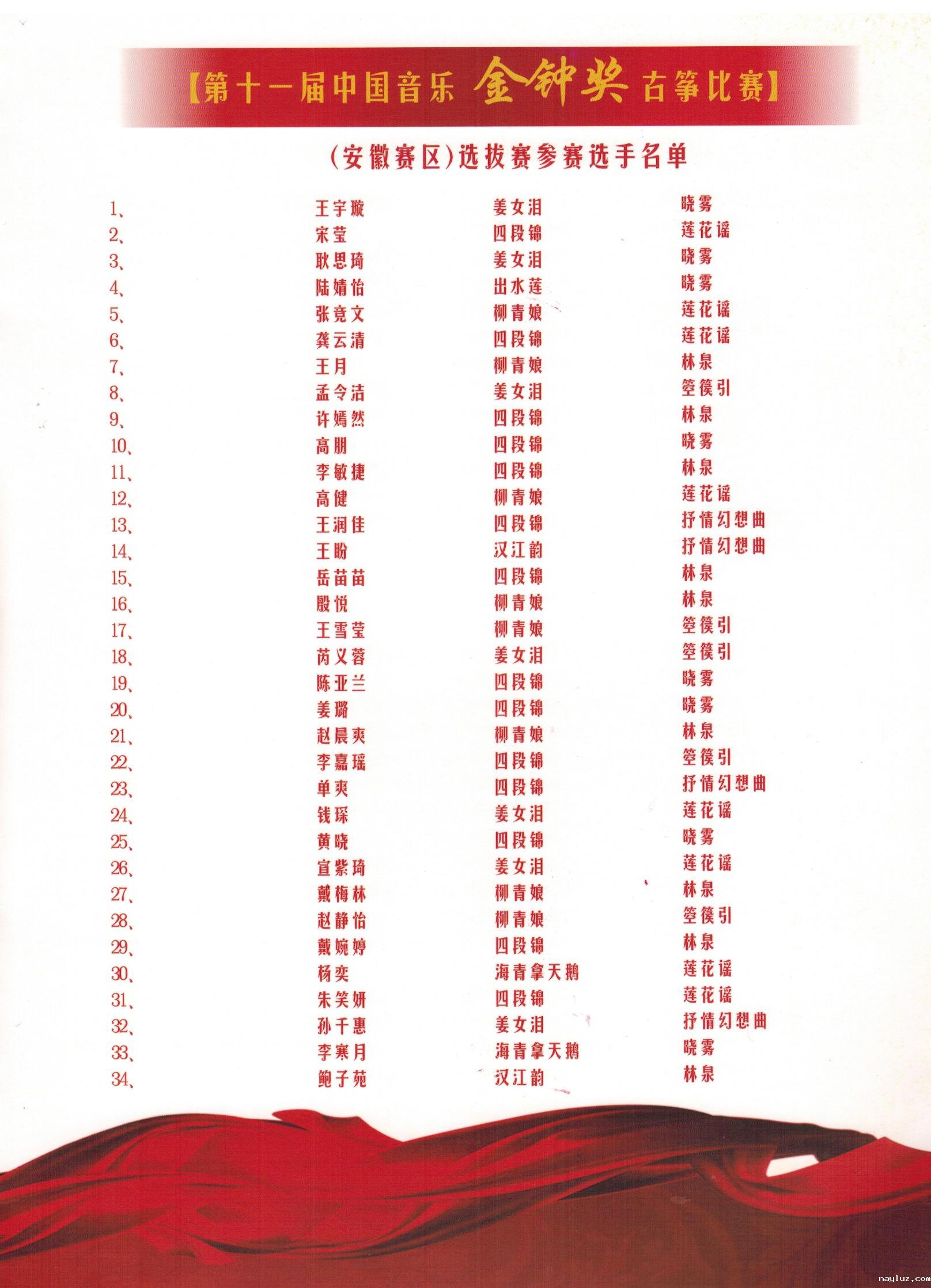 由18luck吧、安徽师范大学音乐学院主办的“第十一届中国音乐金钟奖古筝比赛”安徽赛区选拔赛于2017年5月27日在安徽师范大学音乐学院音乐厅圆满完成。本次古筝选拔赛共有34名选手参加,经过紧张角逐,参赛选手杨奕、赵晨爽获得报送中国音协参加全国复赛的差额评选资格。