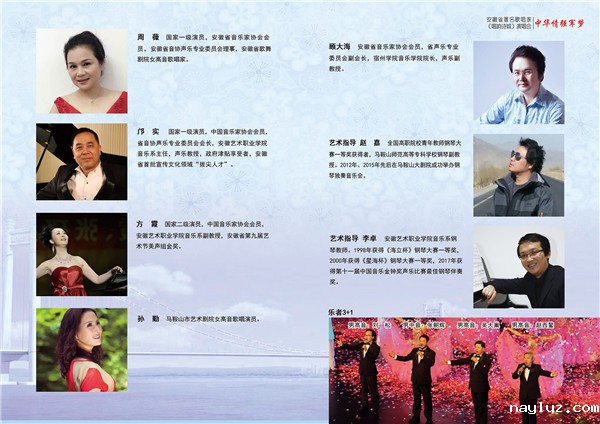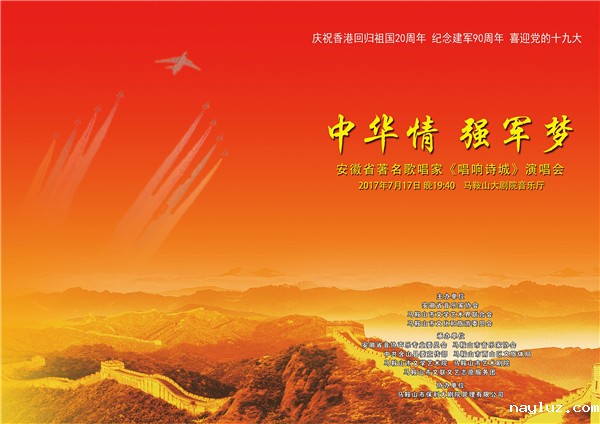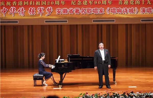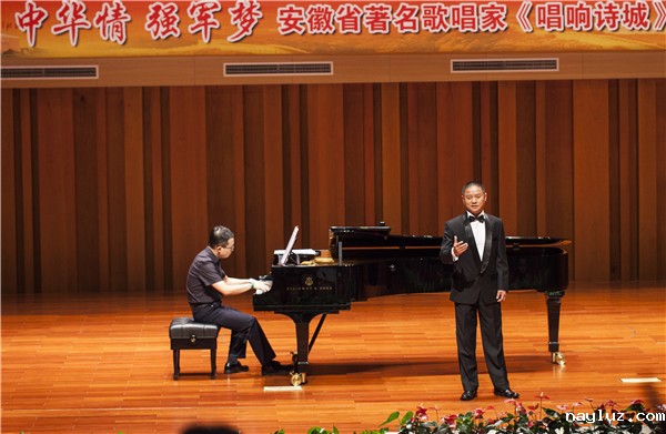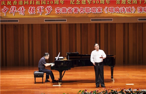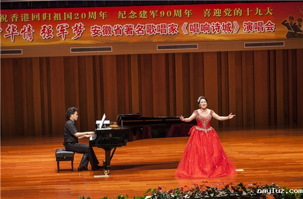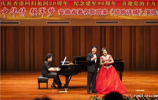 为庆祝香港回归20周年、纪念建军90周年、喜迎党的十九大,在伟大的中国共产党诞辰96周年之际,由18luck吧、马鞍山市文学艺术界联合会、马鞍山市文化和旅游委员会主办,安徽省音协声乐专业委员会、马鞍山市音乐家协会等单位承办的“中华情·强军梦”—安徽省老歌唱家“唱响诗城”演唱会于2017年7月17日晚在马鞍山大剧院音乐厅隆重举行,这也是2017年度安徽省音协声乐专业委员会继“春之声—外国艺术歌曲音乐会”之后推出的第二场主题专场音乐会。