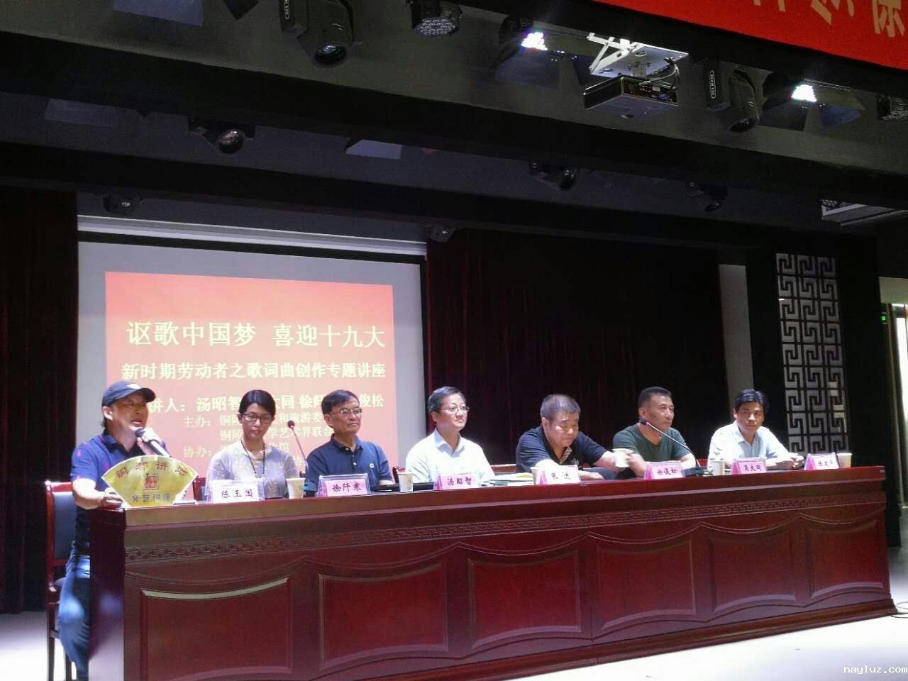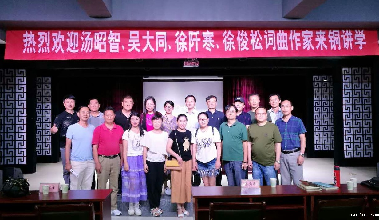 来自江浙沪皖的著名词曲作家汤昭智先生、徐俊松先生、吴大同先生、徐阡寒女士不辞辛劳,冒着高温酷暑为铜陵的音乐工作者传经送宝。四位专家分别就词曲出新,词曲走心,作品要有形有神有义等相关课题做了近四个小时的精彩讲座,博得了现场观众的阵阵掌声,让大家都感到受益匪浅。相信此次高水平的交流讲座一定会对繁荣发展铜陵市的音乐创作起到积极的推动作用。