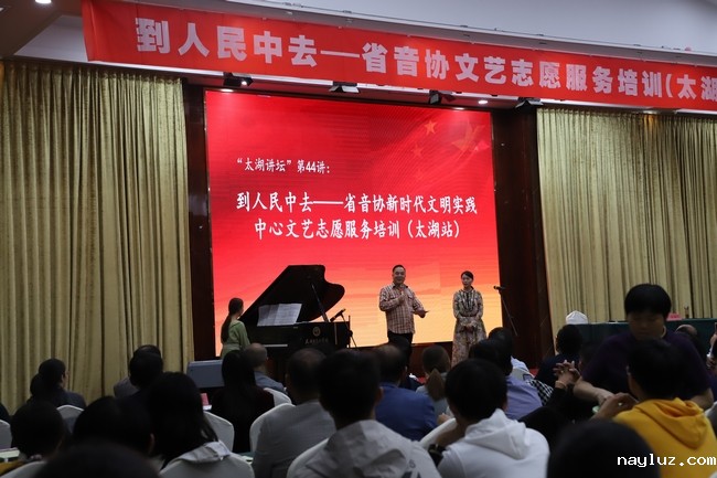 10月22日,“到人民中去——省音协文艺志愿服务培训(太湖县站)”活动在太湖县举行。由省文联副主席、省音协主席盘龙,省音协副主席、安徽艺术职业学院音乐学院院长、教授邝实,省音协副主席、秘书长徐海燕组成的文艺志愿者服务小分队走进太湖,为当地送去了一堂别开生面的声乐专题讲座。当地县委、市文联、县文旅体局、教育局负责人及200名余艺术工作者和爱好者聆听了本次的讲座。