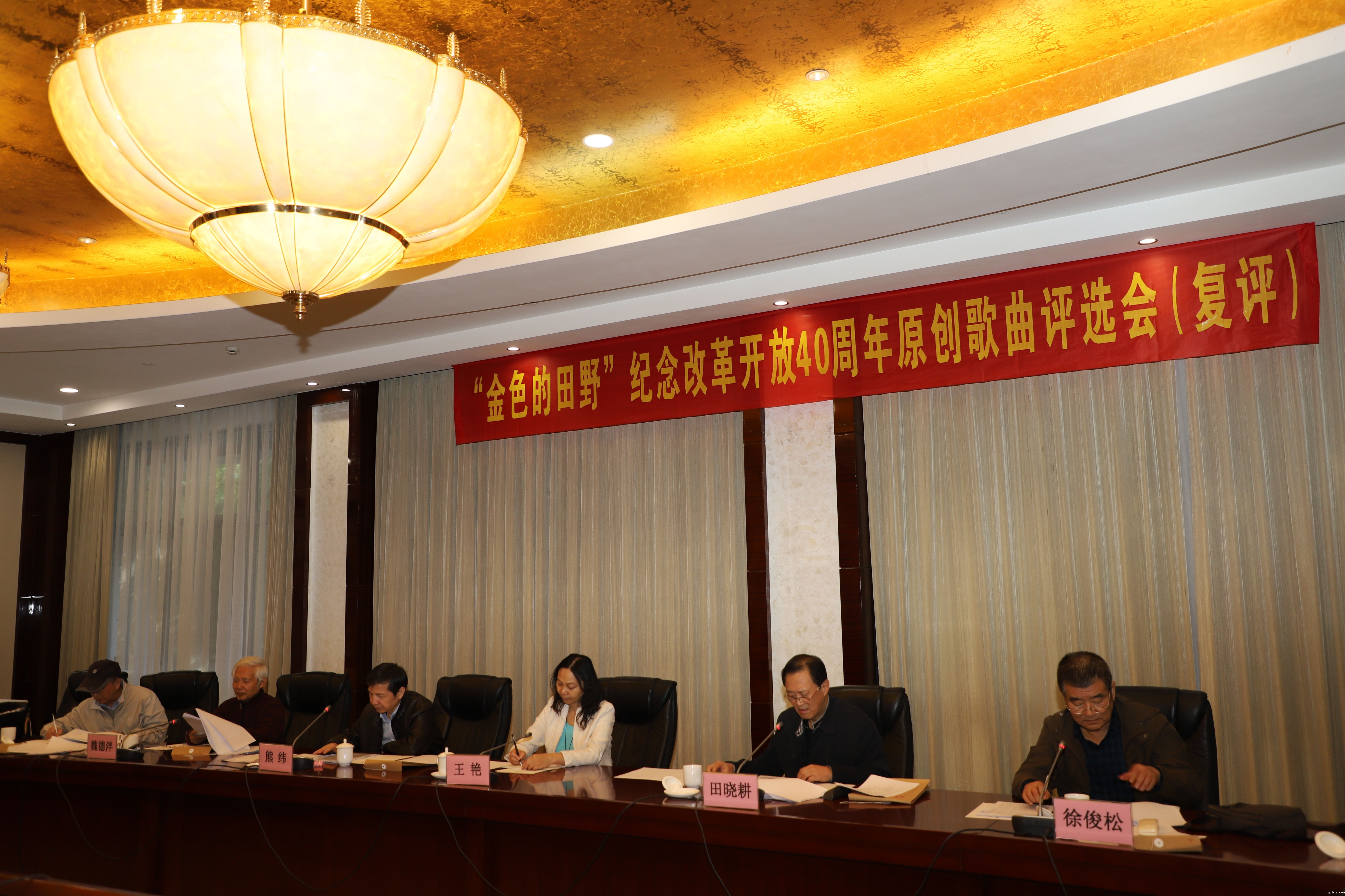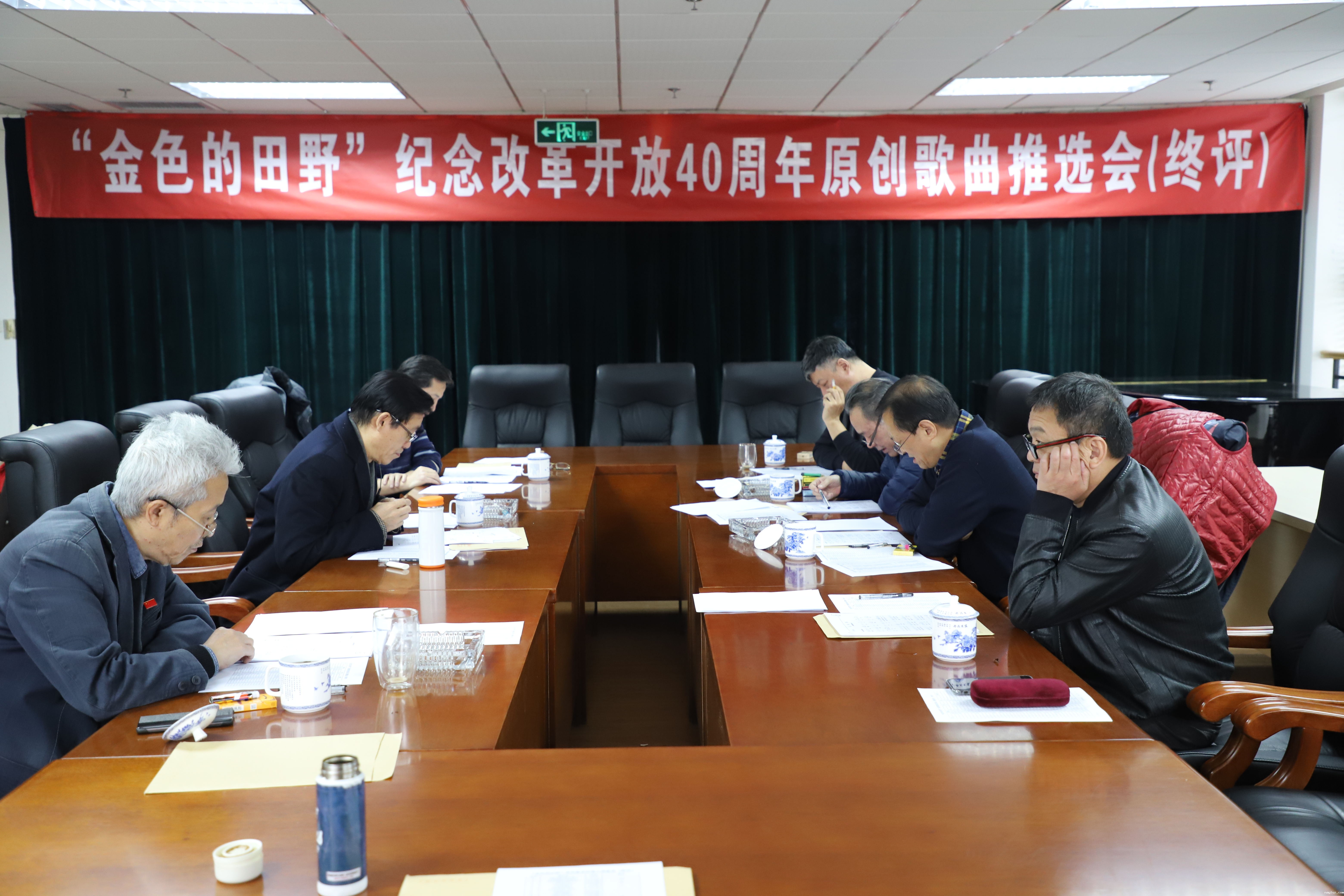 11月7日——8日,“金色的田野”纪念改革开放40周年原创歌曲推选会的终评工作在北京中国音协会议室进行,由中国音协委派中国音乐家协会第八届副主席、原总政歌舞团团长印青,中国音协音乐艺术中心主任、副秘书长熊纬,原战友歌舞团团长、词作家王晓岭,原二炮文工团副团长、中国音协流行音乐协会理事肖白,《歌曲》杂志主编、中国音乐家协会原副秘书长田晓耕,原空政文工团作曲家李昕,著名词作家陈涛担任终评评委,经过紧张的评议工作,评委们以投票的方式推选出12首优秀歌曲,15首入围歌曲。18luck吧将对12首优秀歌曲进行出版推广工作。