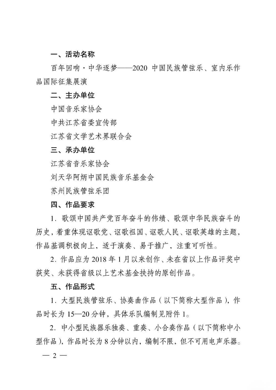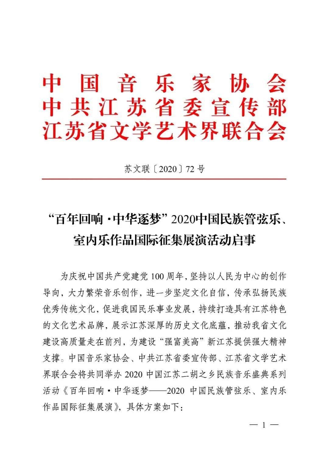 “百年回响·中华逐梦”2020中国民族管弦乐、室内乐作品国际征集展演活动启事