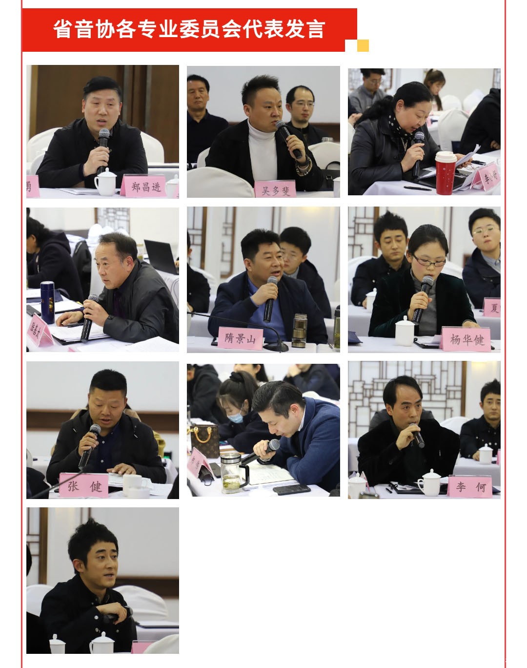 各市音协负责人和省音协各专业委员会负责人也分别对2020年的工作总结和2021年的工作计划进行了汇报交流。就创作生产优秀作品、培养音乐创作人才、深化志愿服务等方面进行了集中讨论,并结合各自的工作实践围绕我省音乐事业的发展作了深入研讨。