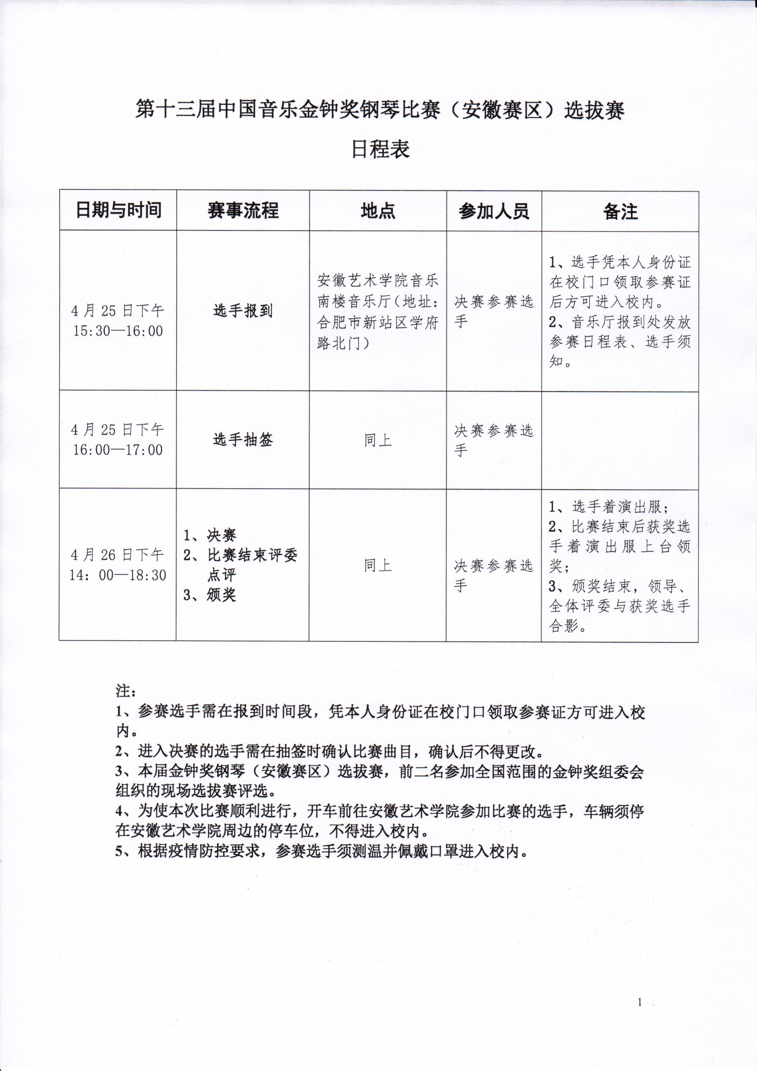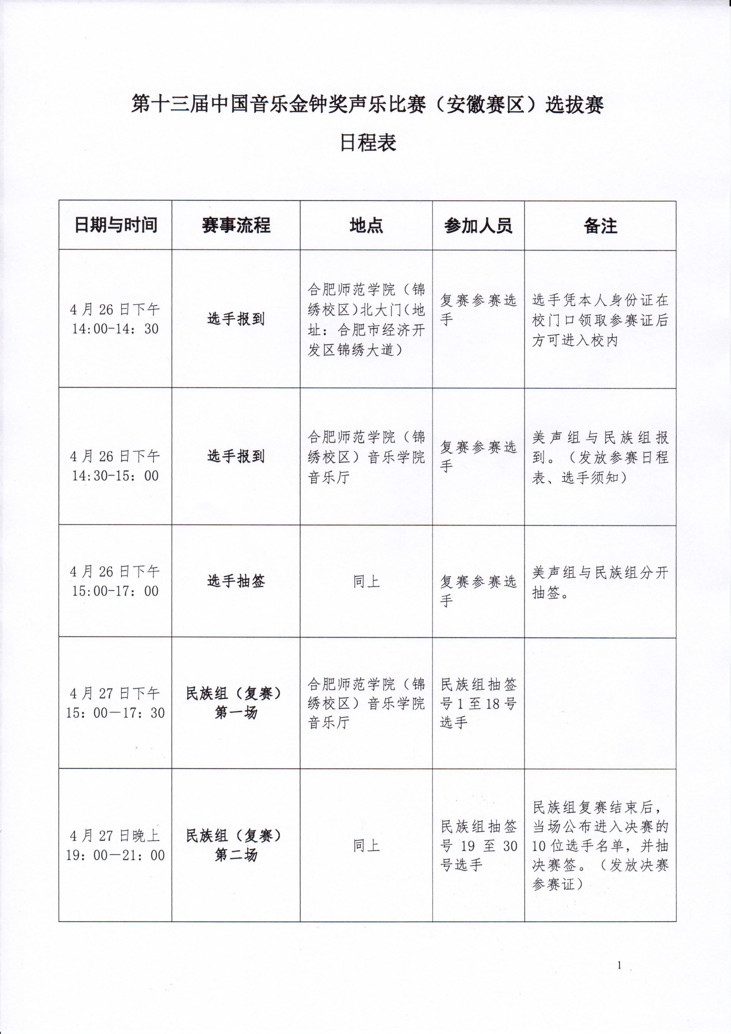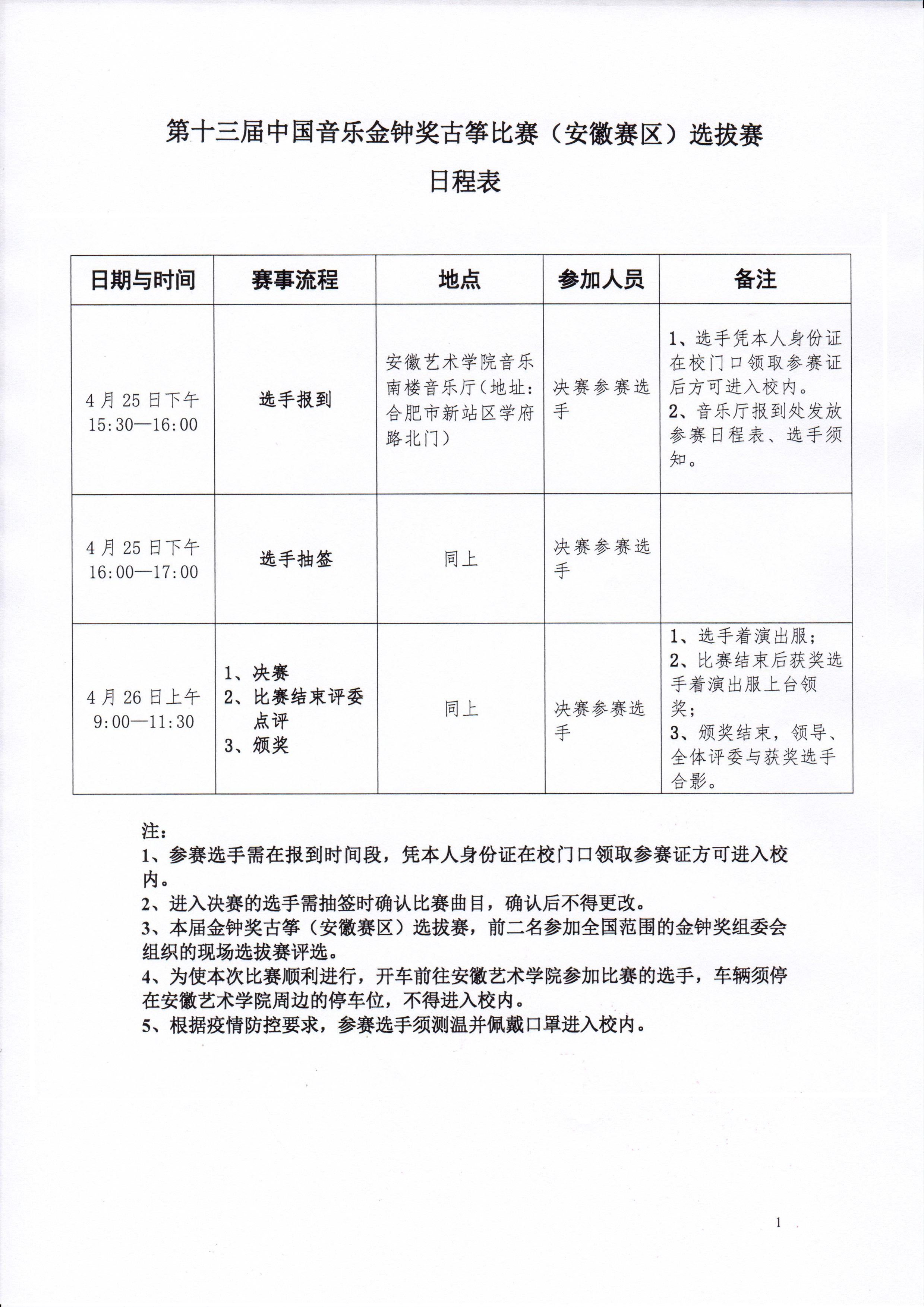关于第十三届中国音乐金钟奖古筝、钢琴、声乐(美声、民族)安徽选拔赛复赛、决赛的通知