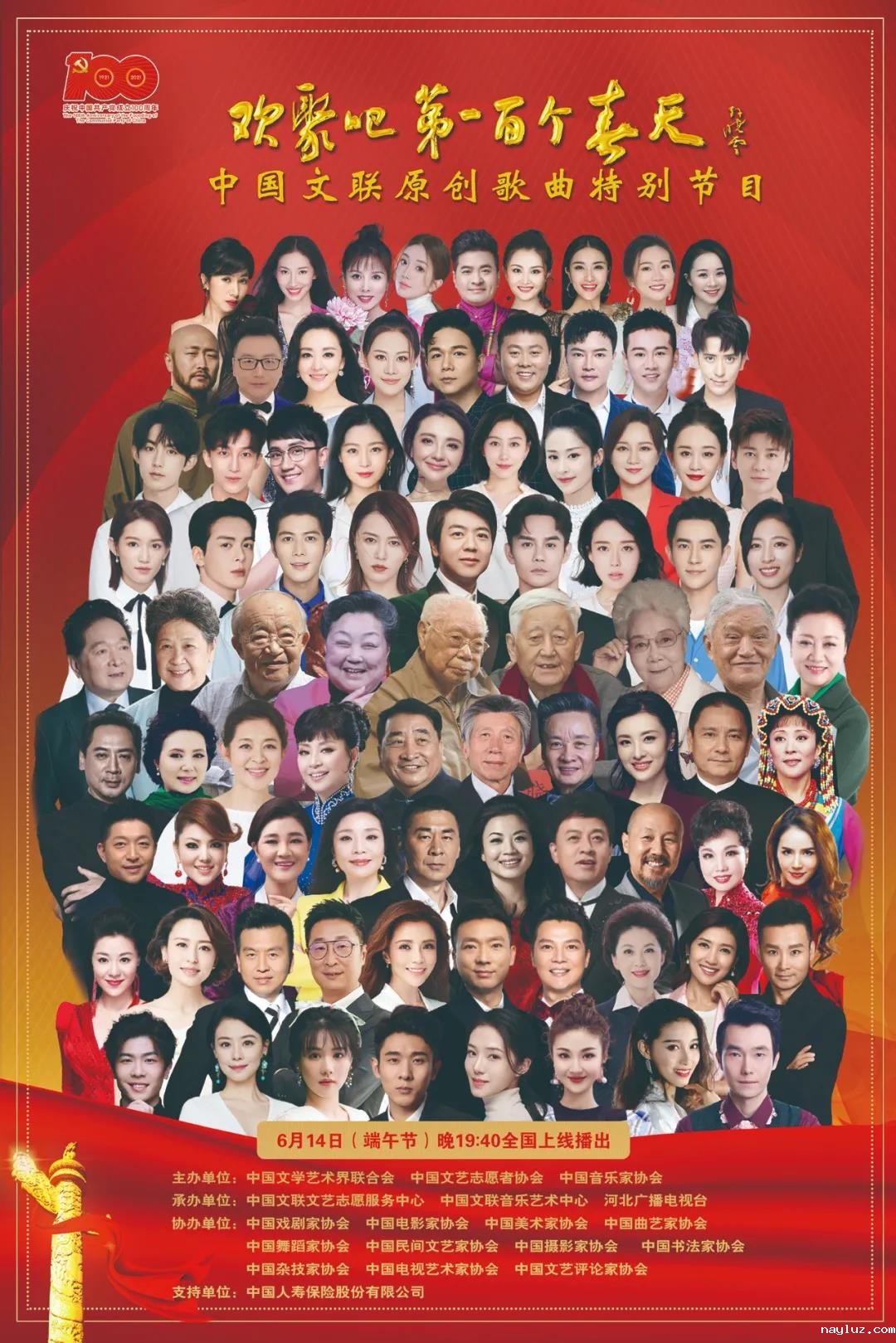 为深入学习贯彻习近平总书记在党史学习教育动员大会上的重要讲话精神,扎实推进党史学习教育、繁荣社会主义文艺,进一步凝聚人心、振奋精神,中国文联、中国文艺志愿者协会组织开展“学党史、传精神、跟党走”中国文艺志愿者在行动系列主题活动,并录制完成活动专题节目:“欢聚吧 第一百个春天”中国文联原创歌曲特别节目,于6月14日(端午节)晚19:40全国上线播出!