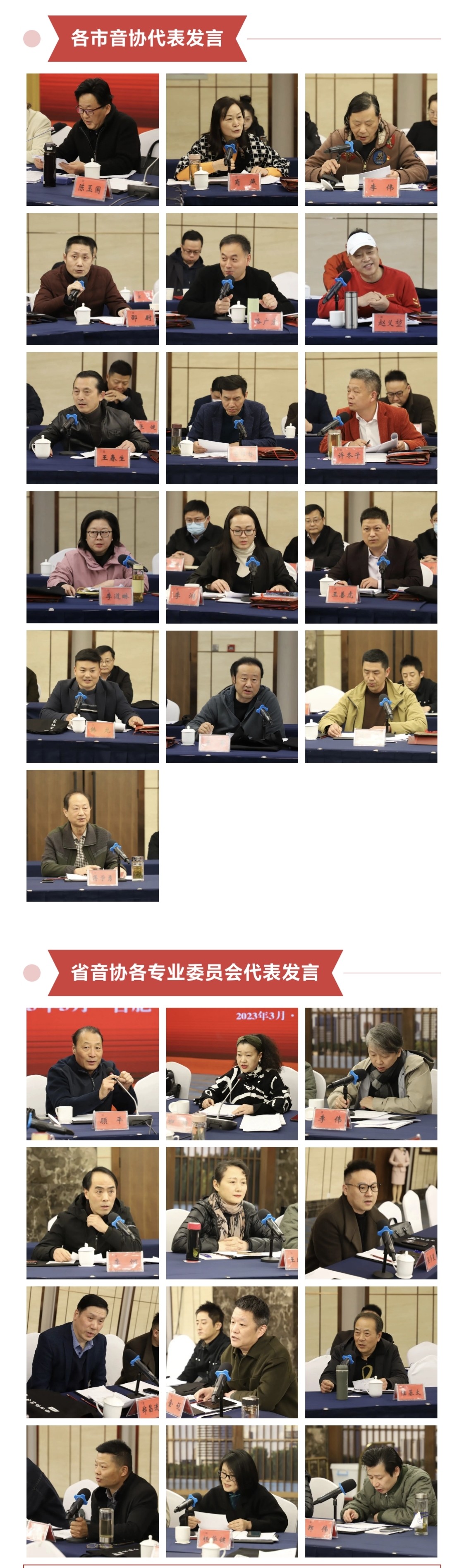 各市音协主席、秘书长和省音协各专业委员主任、秘书长分别对2022年的工作和2023年的工作计划进行了汇报交流。就推出精品力作,开展主题创作,推出新人新作,加强志愿服务等方面进行了充分讨论,并结合各单位的工作实际,围绕今年重点工作作了交流发言。