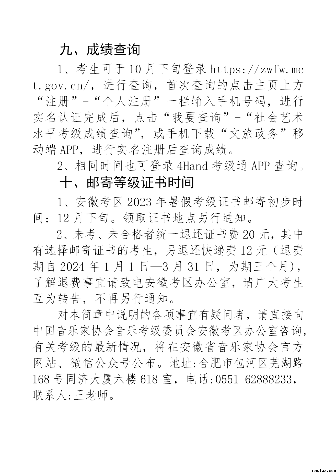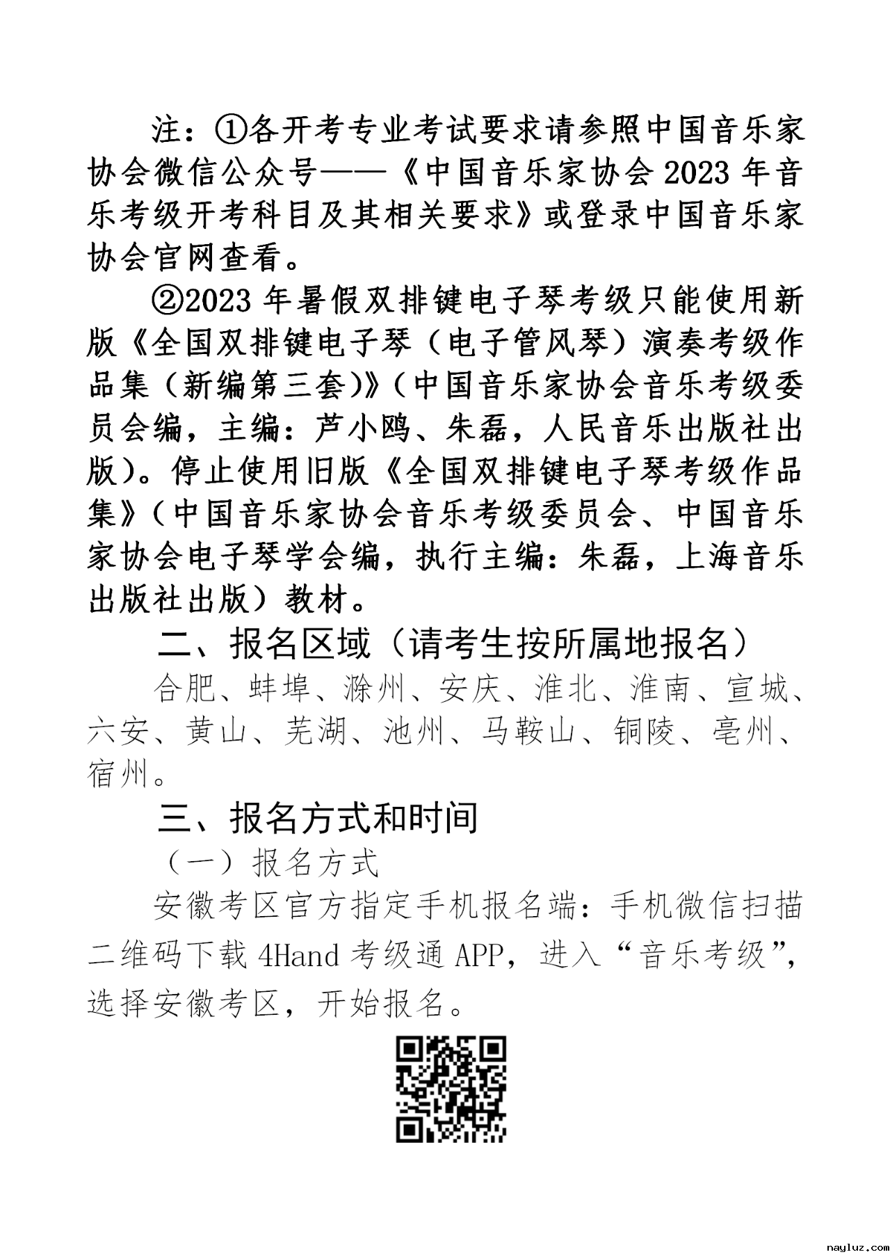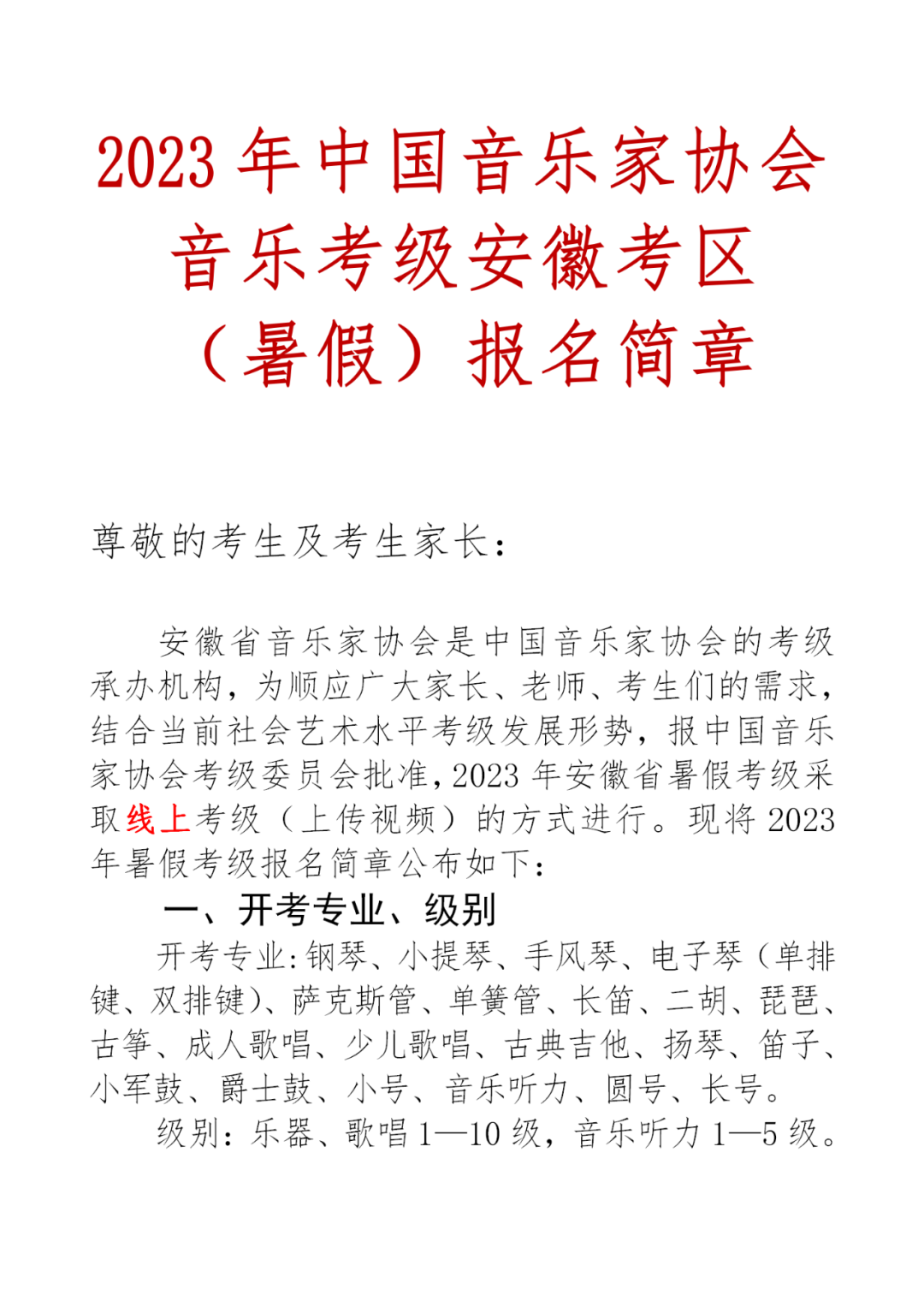 2023年中国音乐家协会音乐考级安徽考区(暑假)报名简章